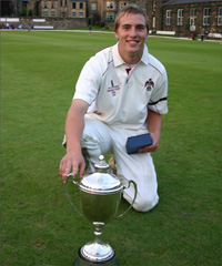 Send us your thoughts on this fantastic day Accrington's Toby Bulcock was named 'Man of the match' for a superb all round performance that saw him hit an unbeaten 39, take the vital catch to dismiss Todmorden dangerman Gulam Bodi and pick up 4-35 from his 8 over spell. After being put in to bat on a flat Centre Vale pitch Accrington compiled a massive 290-6 which is the highest score in a limited overs Worsley Cup Final and also Accrington's highest ever score in the competition. The final always makes stars of unsung heroes and this season's was no exception but it was an unusual one in the form of Accrington professional Roy Silva who hit a brilliant 111. The Sri Lankan has often looked a forlorn figure but he has grown in confidence since his maiden league century at Rishton two weeks ago. After a typically nervous start he blossomed in stands of 45 with Stuart Crabtree, 119 with Graham Lloyd and 67 with Toby Bulcock. Silva's innings was the highest by a professional in a limited overs final. The Accrington openers didn't hang around for long with Matt Wilson trapped lbw by Mo Bux in the 3rd over and Paul Carroll steering John Campbell, who had come in as a late replacement for the injured Stuart Priestley, into the hands of Andrew Sutcliffe at slip. Just as he had done in the league game at Centre Vale, Crabtree got off the mark by lofting Bux for a straight six as he and Graeme Sneddon began to rebuild the innings. At the end of the 10th over Accrington were 27-2. Two boundaries by Crabtree in the 12th over lifted the scoring rate and led to the introduction of James Morgan in place of Campbell in the 14th over. In between lbw appeals, Sneddon squeezed the ball to the point boundary but the second shout was answered in the affirmative by umpire Lawrence Crook and an unhappy Sneddon was on his way back after making 13. Enter Roy Silva and the Accrington paid man was on his way after hitting a single off his first ball from Bux. Crabtree and Silva continued to chip away and after 20 overs the visitors were 70-3 with honours even. Todmorden skipper Jon Henderson introduced himself into the attack and Silva welcomed him with a straight driven four. The second maiden of the match was bowled by Morgan in the 22nd over. Todmorden captured a 4th Accrington wicket in the 26th over when Crabtree was well held by Gulam Bodi after a good knock of 41 which contained four fours and a six. The match now entered a critical phase with Graham Lloyd joining Silva at the crease. Lloyd got under way immediately with a single off Morgan. The 100 came up off the same bowler two overs later when Silva steered the ball through square leg for four. The introduction of Todmorden professional Bodi into the attack was another pivotal moment in the match. The slow left armer conceded 16 runs in his first over as Lloyd reverse swept his first ball for his first boundary and then cut his second for another. Silva joined in the fun later in the same over with another boundary to lift the total to 132-4 after 31 overs. Henderson kept faith with his professional and he should have been repaid but Silva was dropped on 46. The Sri Lankan brought up his half century in the next over, the first bowled by Andrew Sutcliffe. Lloyd employed the reverse sweep to good effect again in Bodi's next over and Silva brought up the 150 in Sutcliffe's next over. Like his father before him Lloyd knows when to make a half century and he earned himself his second collection of the weekend in the 42nd over, bringing up the 200 later in the same over. The former Lancashire man was out in Henderson's next over when he skied the ball to Andrew Sutcliffe at cover after making 59. His innings contained seven fours, four of which were reverse swept, from the 64 balls he faced. Silva offered a sharp return catch in the next over bowled by the returning Campbell on 77 and celebrated with a huge six. Bulcock then tore into Henderson, hitting the home skipper for successive boundaries and a huge six as 17 came off the over.